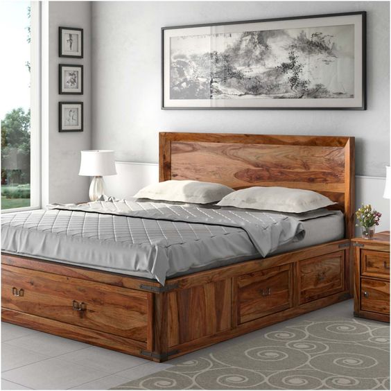 For those who prefer a more modern take on rustic design, a low-profile wooden platform bed is an excellent choice. These beds feature a minimalist design with a sleek, low-to-the-ground frame that highlights the natural beauty of the wood while creating a clean, uncluttered look. The platform bed is perfect for smaller bedrooms or apartments, as it opens up the space by creating a sense of openness and flow. With its simple, streamlined design, this bed allows the natural grain of the wood to take center stage, making it an ideal choice for those who appreciate the beauty of wood in its purest form.