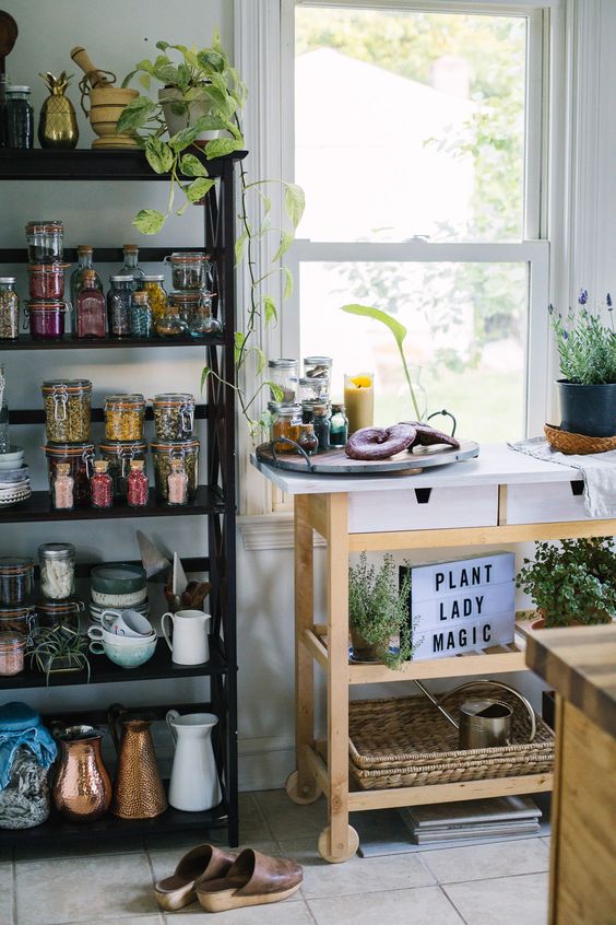 Incorporating a bit of personality into the open pantry design can also make the space feel more welcoming. Add a touch of style by incorporating decorative elements such as framed art, plants, or vintage kitchenware. A few plants in small pots can bring life to the shelves, adding a pop of green that contrasts nicely with the monochrome pantry essentials. Vintage jars, old crates, or unique containers can add character to the shelves, giving the pantry an eclectic, personalized feel. These little touches can help transform an otherwise utilitarian space into something that feels like an extension of your personal style.